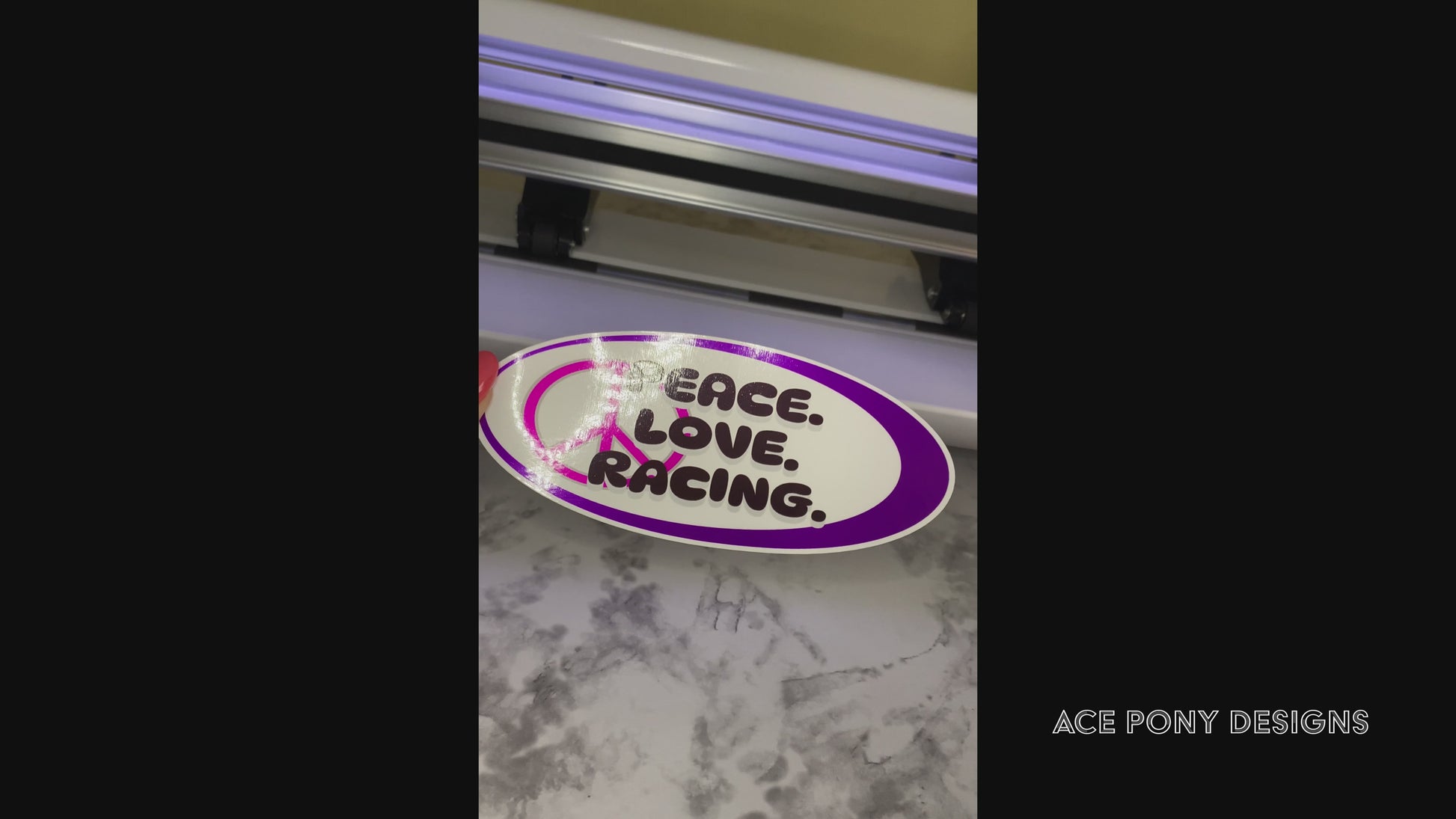 "Show off your passion for racing with our Peace. Love. Racing decal.